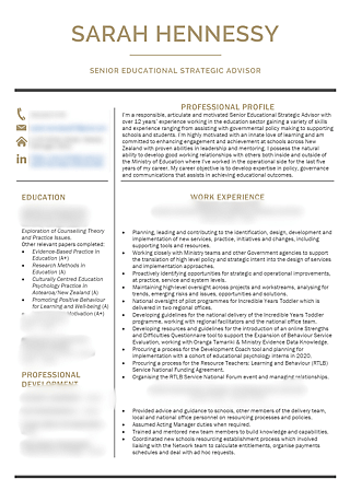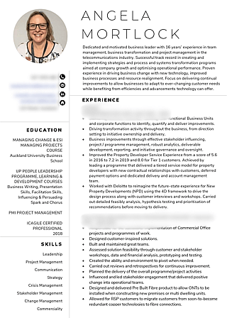 "Thank you, Sarah, for compiling a brilliant NZ-compliant CV for me. As soon as I started using the CV you designed, I was invited for more interviews and shortly was employed. Thank you for your help and expertise."